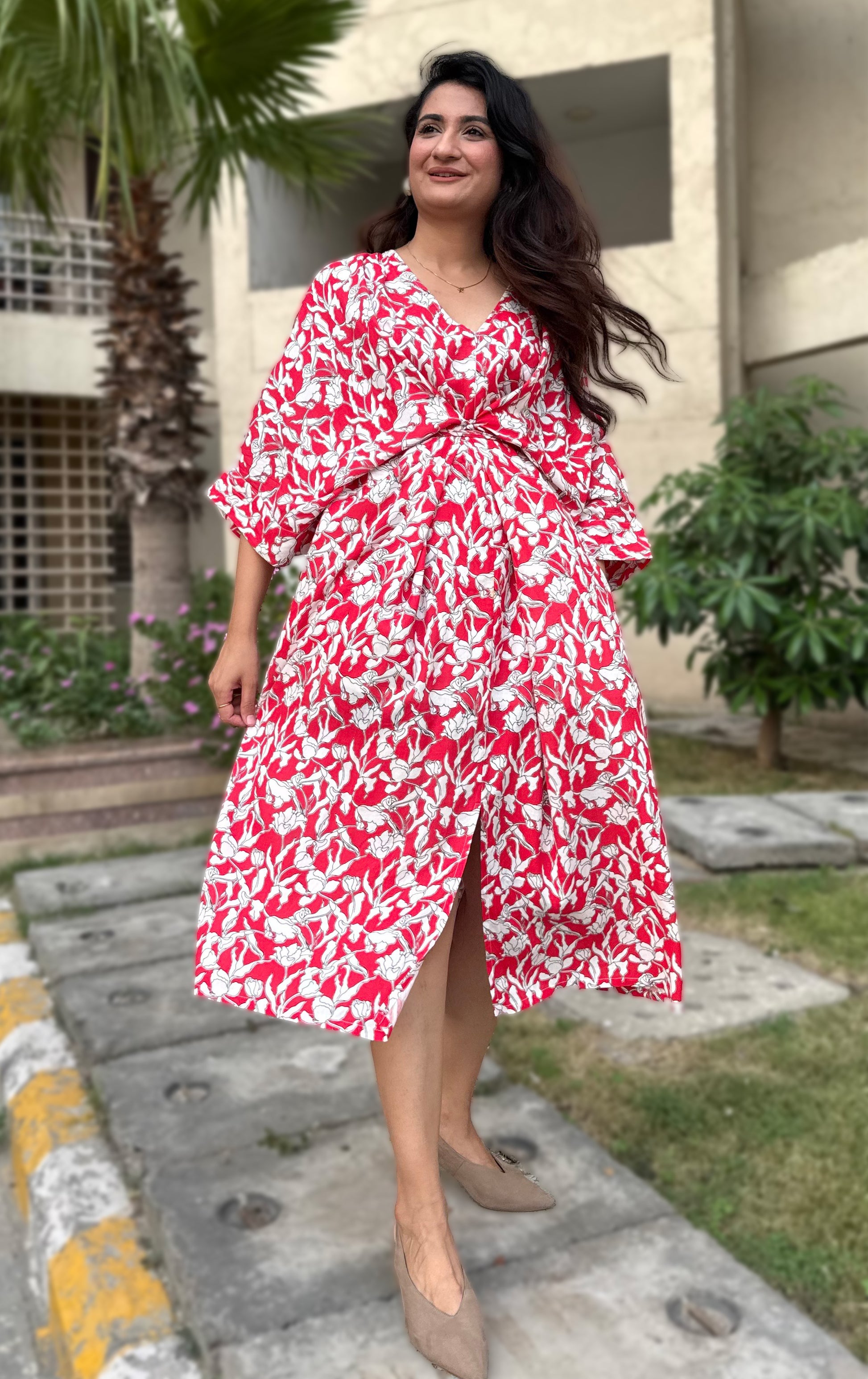 Made from 100% viscose — a breathable, natural fabric that feels like second skin. Evaarah isn't just a dress; it's a companion for every chapter of a woman's life. From brunches before marriage, to pregnancy, to breastfeeding, to the beautiful chaos of everyday motherhood — one dress that understands all of you.